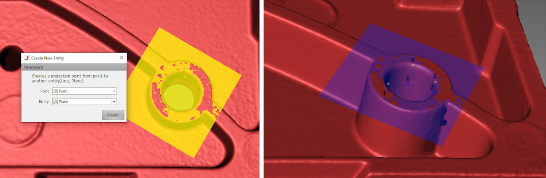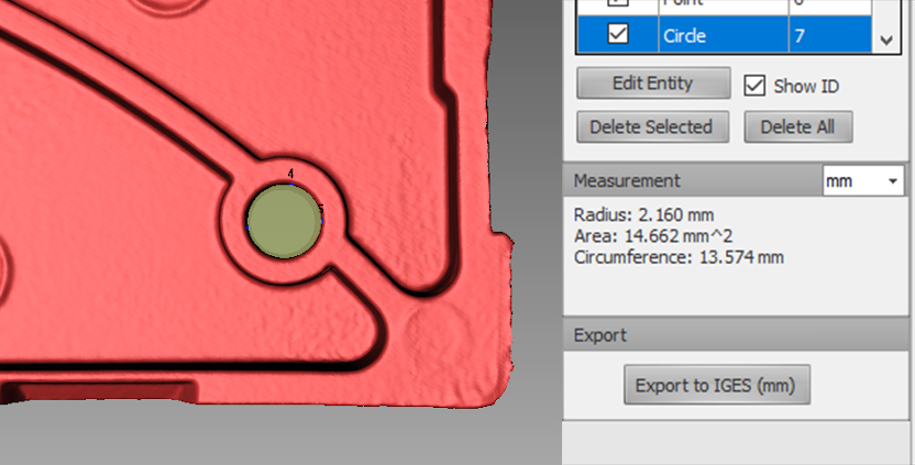 Measurement on the scanned data can be performed with different techniques. It depends on the geometric and dimensional characteristics of the parts. In this project, we will be measuring the radius of the hole by creating a circle from projected points.